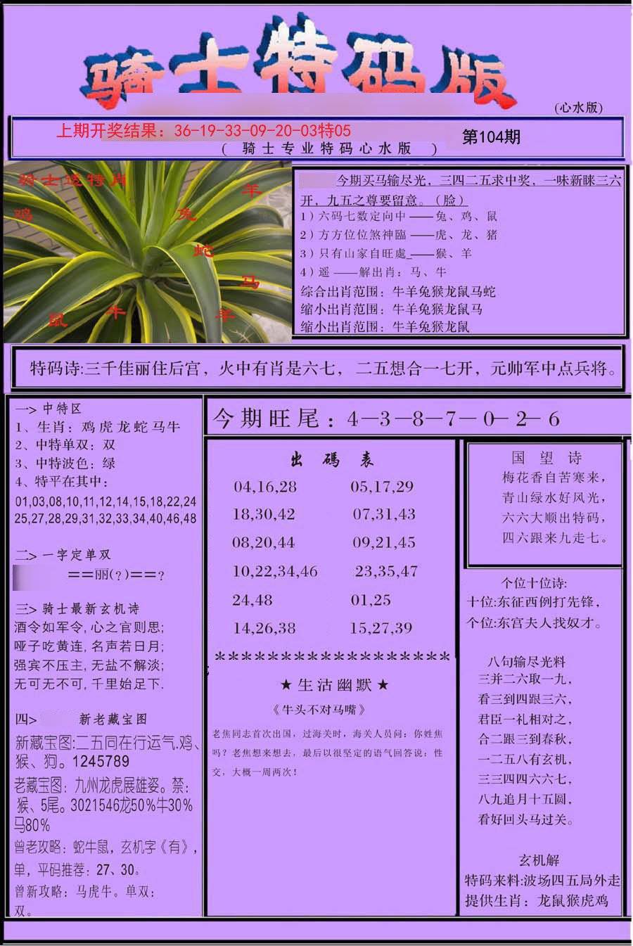 104期:规律四肖 【牛鸡猴羊】开:?00 |