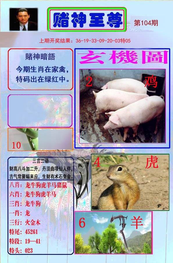 | 104期〖⑦肖〗猴蛇虎鼠羊兔鸡 |