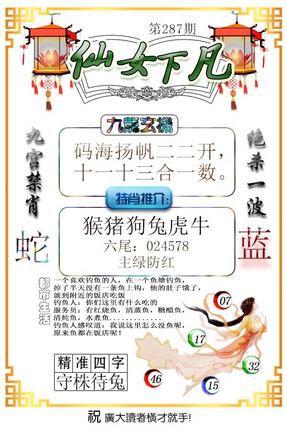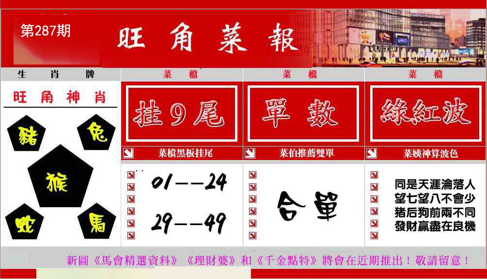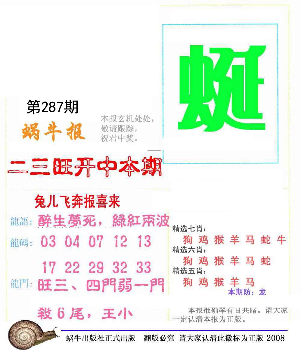 287期〖⑦肖〗猪龙羊虎马兔猴 |