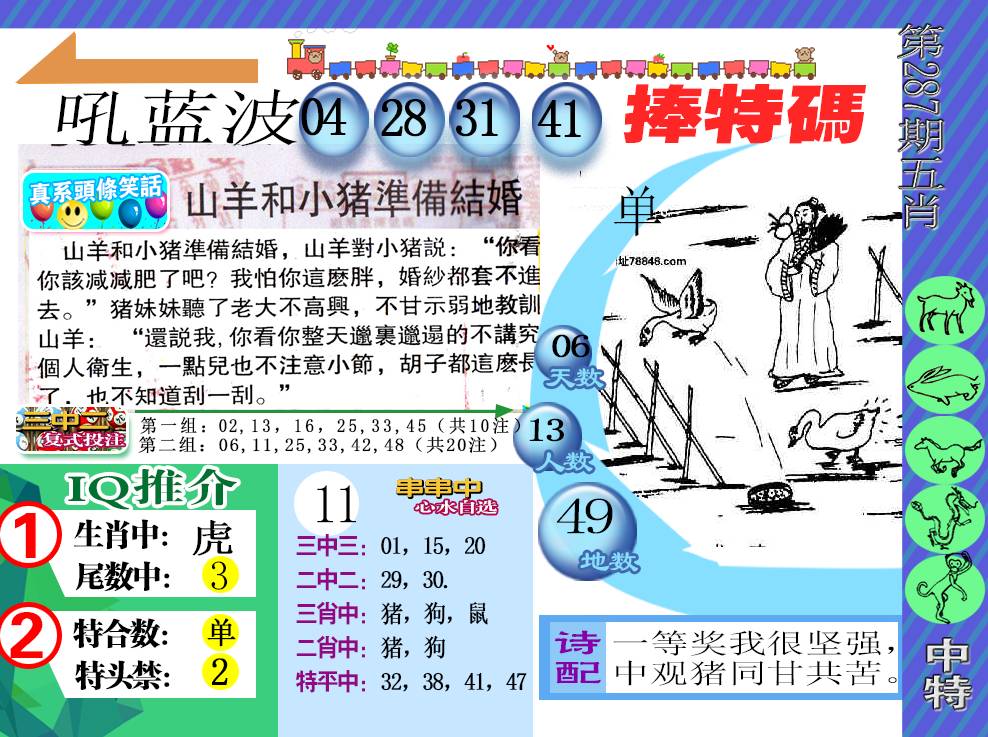 281期〖⑦肖〗鼠猪兔马狗羊鸡 |