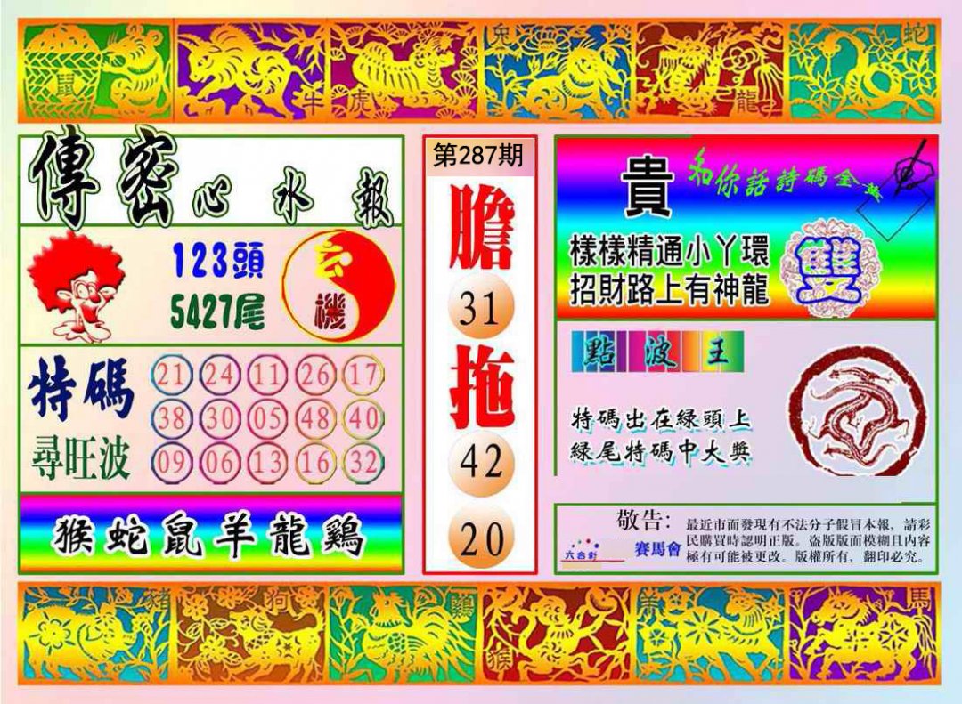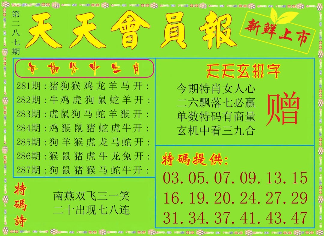 286期:四肖四码开:鸡21 |