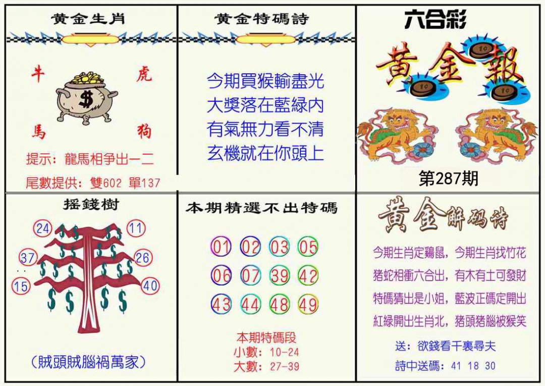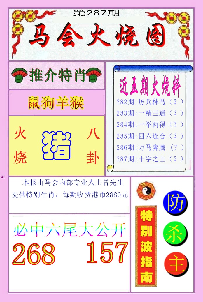 287期〖⑤肖〗猪龙羊虎马 |
