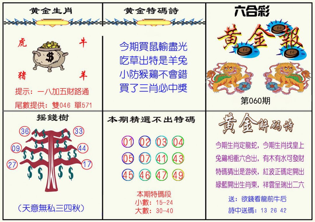 | 059期〖⑦肖〗羊鼠兔牛猴龙虎 |