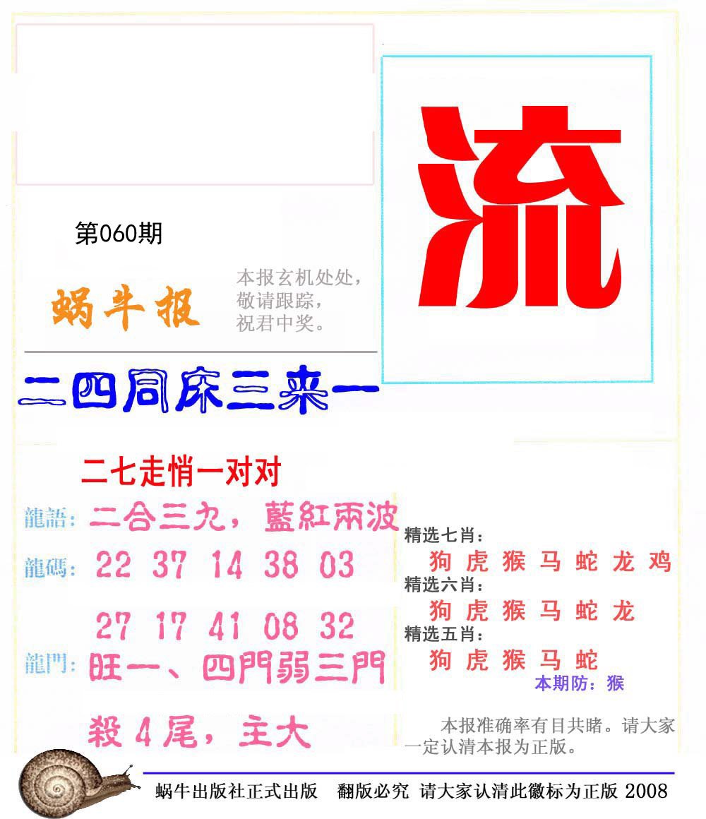 | 060期〖⑤肖〗马鼠猴狗牛 |